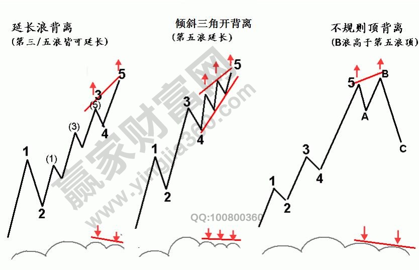 1)延長(zhǎng)浪背離 2)終結(jié)三角形背離 3)不規(guī)則頂背離