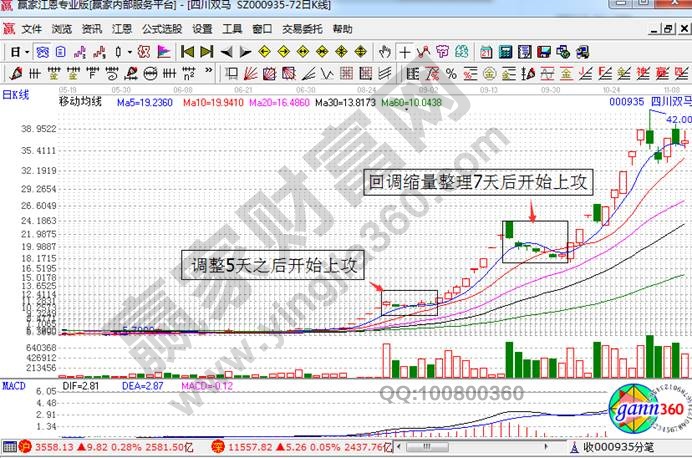 當股價調整到10日均線的位置鼻祖止跌,不然567是不能成立的;在調整過程中必須是縮量調整狀態;在縮量調整的過程中必須是陰線縮量,陽線放量,形成一個絕頂的倍量伸縮狀態;