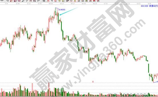 4.在市場剛開始下跌就出現(xiàn)大陰線,這可以看做是頂部形態(tài)的進一步確認,后市看跌,如果在頂部位置沒有出局的,一定要果斷的出局,避免更多的損失或是利潤回吐。