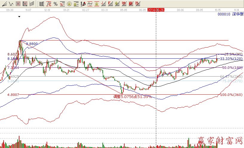 從圖中可以看出如果該股近期突破25%的位置,將繼續看高一線,如果不能突破我們就需要注意生命線位置的支撐點(7.50附近)了,破了就懂的止損出來。