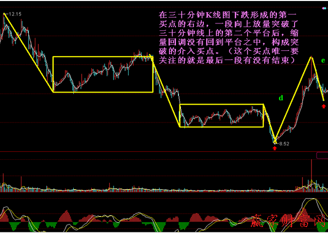 現在要做的就是等待e階段的結束,等待第二天五分鐘K線圖尋找精確的買點。