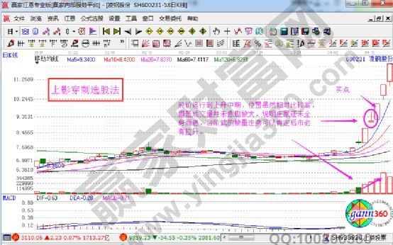 上影穿刺選股法的技術特征是什么?上面的長城動漫就是一個非常好的實戰圖形,我們就結合圖形來為大家進行講解這個選股方法的特征,具體如下:
