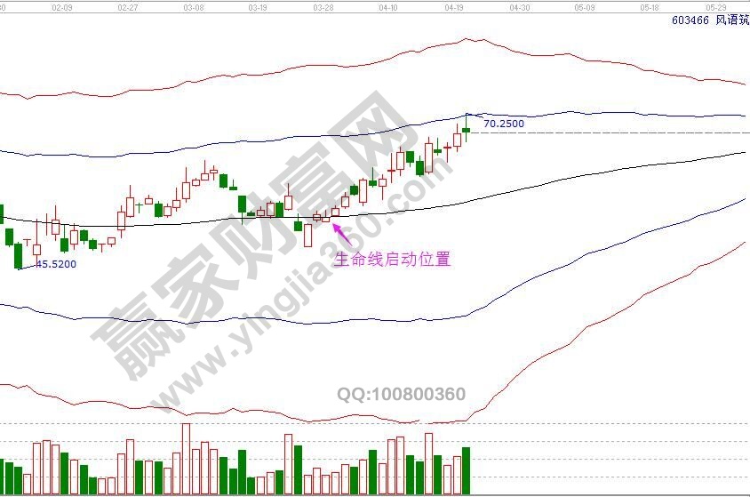 日線買點(diǎn)——生命線啟動(dòng),站穩(wěn)一線看高一線,第一目標(biāo)位藍(lán)色上軌線位置,目前已經(jīng)到達(dá)藍(lán)色上軌線第一目標(biāo)位。
